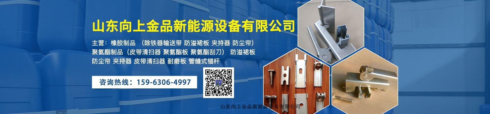 公司位于孔孟之鄉,京滬鐵路、京九鐵路、兗石鐵路、京杭大運河、京福a高速、日菏高速、一0四國道等主要交通干線都從該地區穿過,交通便利。公司專業從事礦用設備及配件的銷售。產品廣泛用于煤炭、電力、水泥、冶金 等行業。 公司主營:橡膠制品 (除鐵器輸送帶 防溢裙板 夾持器 防塵簾)聚氨酯制品(皮帶清掃器 聚氨酯板 聚氨酯刮刀) 防溢裙板 防塵簾 夾持器 皮帶清掃器 耐磨板 管縫式錨桿